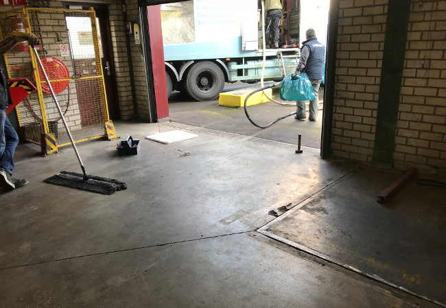 « Les sols s’étaient tellement affaissés à certains endroits que des renfoncements relativement importants s’étaient formés près des portes : jusqu’à 2,5 centimètres », raconte Rob van der Geer de la société Twinpack. « C’était non seulement dangereux pour nos caristes, mais cela générait également des nuisances sonores. Nous avions déjà tenté d’éliminer les inégalités avec de la résine époxyde et de souder des plaques en acier par-dessus, mais ce n’était que du rafistolage. »